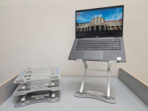 Mehr Komfort: Eure Rückmeldungen aus der Umfrage im Sommersemester haben gezeigt, wie wichtig euch ergonomisches Arbeiten ist. Deshalb haben wir höhenverstellbare Laptopständer angeschafft. Sie fördern eine gesündere Haltung und verwandeln Tische schnell in Stehplätze — ideal als Abwechslung bei längeren Lern- oder Arbeitszeiten.