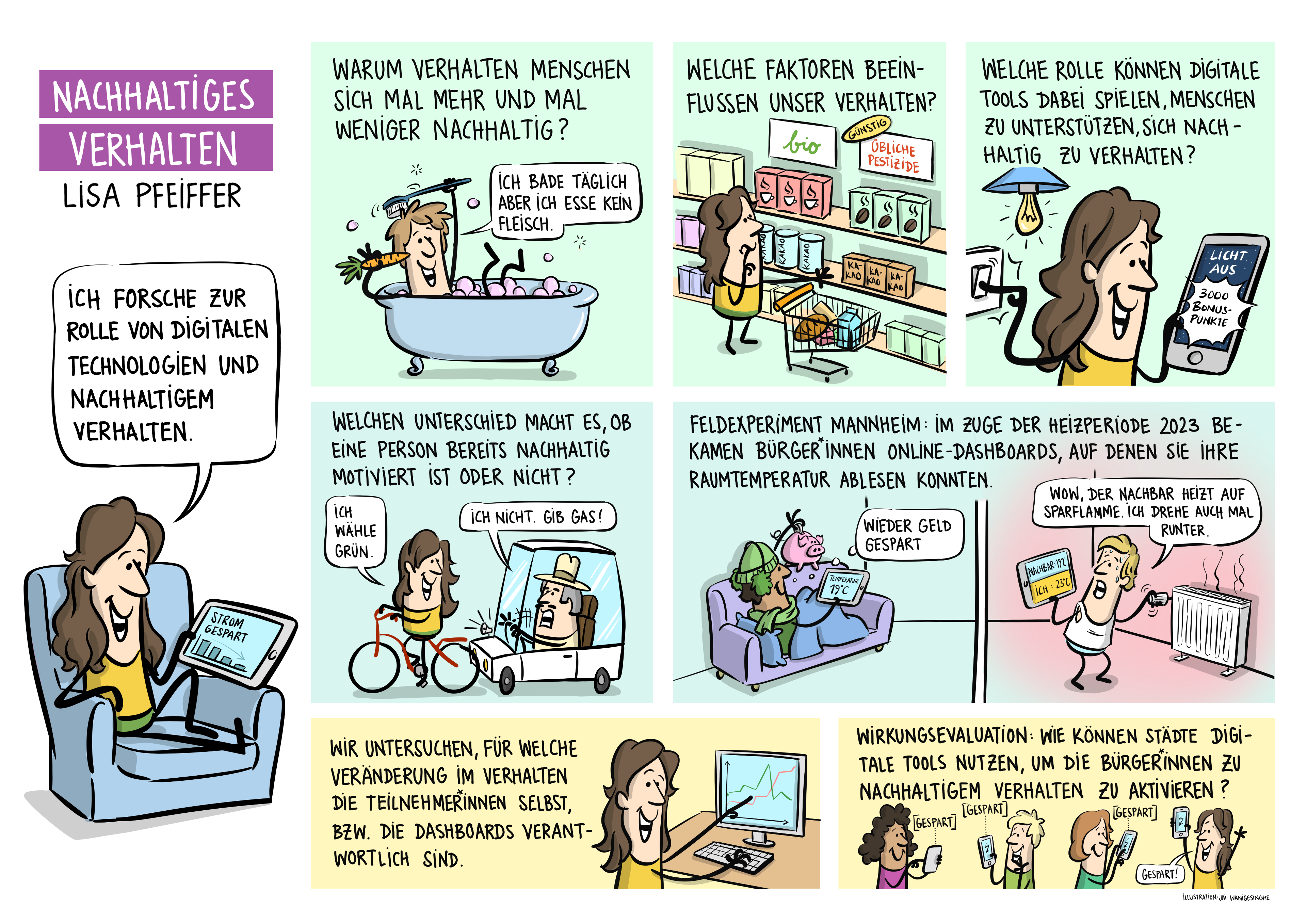 Lisa Pfeiffer ist Doktorandin an der Professur für BWL, insb. Nachhaltiges Wirtschaften der Universität Hamburg. Ihre Forschungsinteressen liegen in der Förderung nachhaltigen Verhaltens mithilfe von digitalen Technologien. Dabei interessiert sie sich vor allem für soziale und umweltbedingte Einflussmechanismen. Ihre Forschung wurde auf Konferenzen wie der International Association of Business and Society sowie dem Business & Society Seminar präsentiert. Sie ist Projektmanagerin für soziale Wirkungsmessung des Projektes sMArt roots, einem Kooperationsprojekt mit der Stadt Mannheim. Im Rahmen des Projektes werden insbesondere zielgruppenspezifische Ansätze zur Wirkungsmessung kommunaler Digitalisierungs- und Nachhaltigkeitsprojekte entwickelt und umgesetzt. Lisa hat einen Master in Psychologie (M.Sc.) der Universität Mannheim und einen Bachelor in Psychologie (B.Sc.) der Universität Kassel.